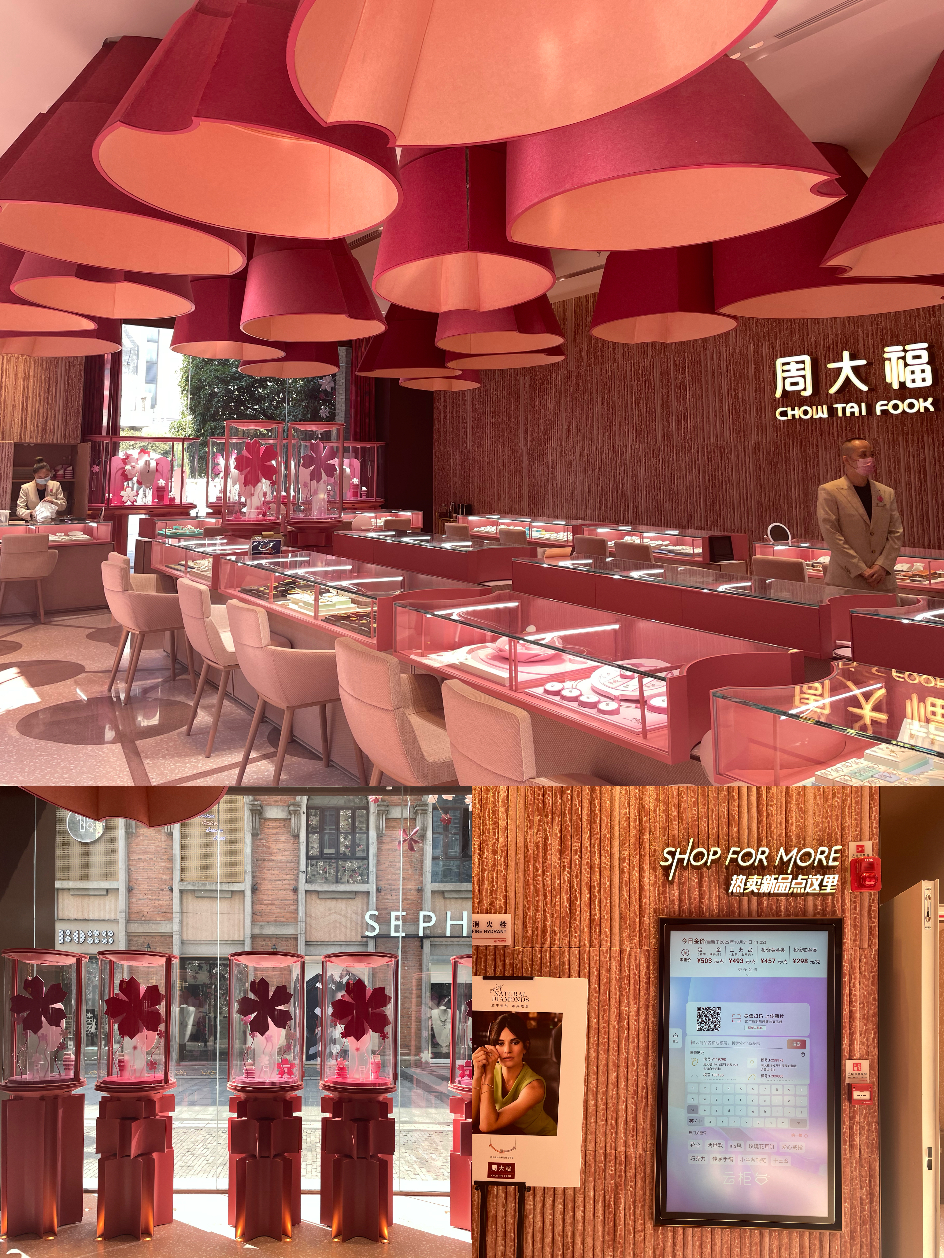 据壹览商业不完全统计,近年来,周大福已经在重庆、武汉、北京等8个城市开出“礼”主题店,在西安、北京、上海等5个城市开出“传”主题店。这家粉红色的主题店则是首家“颂”主题店。据店员介绍,“颂”是欢颂、歌颂的意思,代表美好的祝愿。
