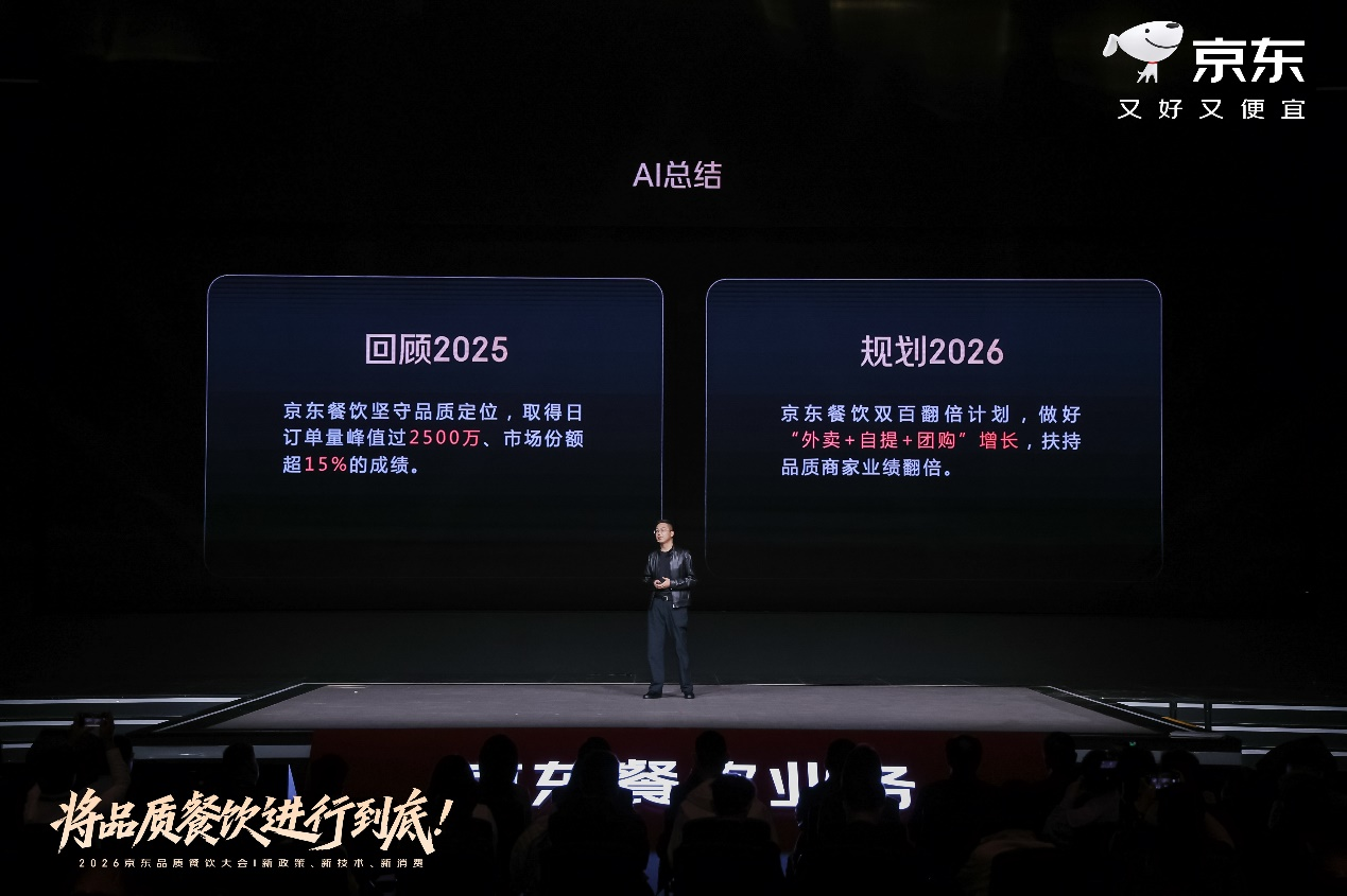 自2025年京东发起扶持商家的“双百计划”以来,已有近400个餐饮品牌在京东外卖订单量突破百万单。京东品质餐饮大会现场宣布,2026年正式启动“双百翻倍计划”,从“外卖”走向更广阔的“餐饮”,全面深化“外卖+自提+团购”餐饮全场景精细化运营;基于“服务、产品、品牌”三大共建,扶持更多品质餐饮商家2026年业绩翻倍,共赢增长。