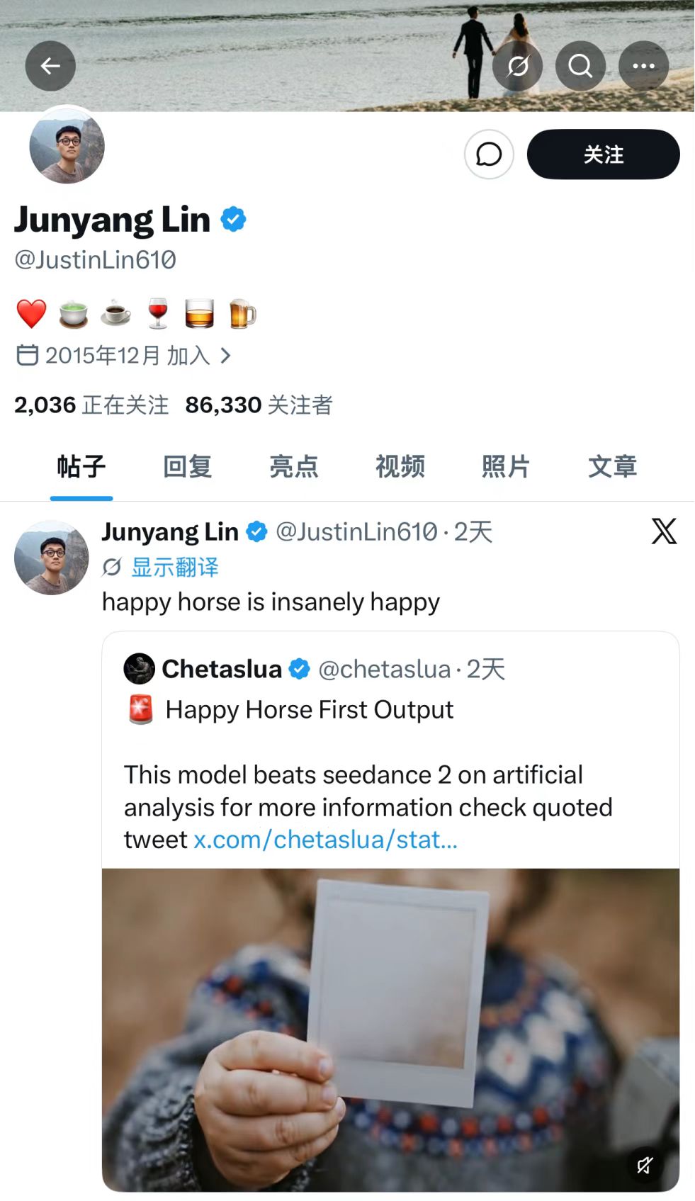 值得关注的是,4月8日,前阿里通义千问团队负责人林俊旸已在X平台公开转发HappyHorse生成样例,并评价“happy horse is insanely happy”,这被技术圈视为模型出自阿里的早期信号。